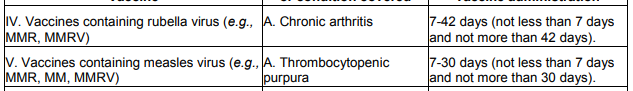 Vaccine Injury Table—Rubella and Measles Vaccines