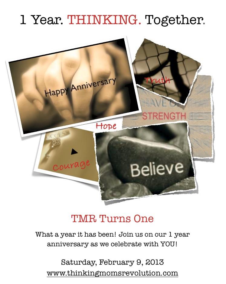 Happy Anniversary TMR! In this last year you have given me hope, education and the knowledge I am NOT alone! Thank you from the bottom of my heart…and think on! I’ll be right there with you!