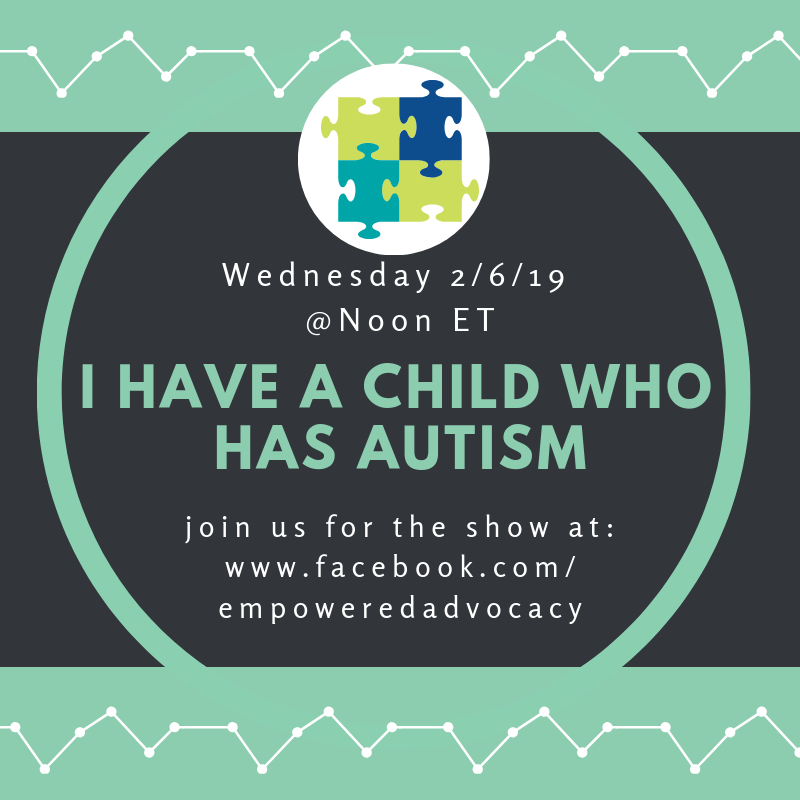 Don’t miss THIS WEEK’S episode on Wednesday (2/6/19), at noon ET, for “I Have a Child Who Has Autism,” where Kristi and Patty will discuss the medical aspects of autism and answer the question Is Autism Medical? (based on an article Kristi wrote for Pittsburgh Parent Magazine, here).