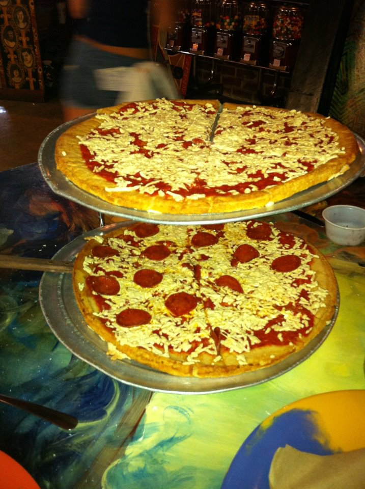 On Saturday, we headed Downtown and checked out the sights. We decided to get lunch at The Mellow Mushroom because they have gluten-free AND casein- free pizza. We loaded into a booth and checked out the menu. They even had Hard Cider! Where has this joint been all my life??? We placed our order and the kids patiently waited for their food.
