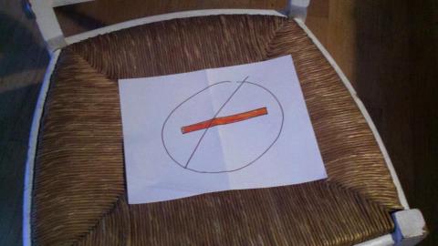 When Patrick was four, he still had hardly put two words together. I got a little overzealous with the abundance of organic sweet potatoes I could get at the grocery store and started baking lots of fries. Then I found this on his chair at the dinner table one day…