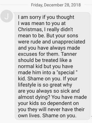 Unfortunately, a close family member had crossed the line with hateful comments about me and my children, resulting in a firm boundary being set in place.