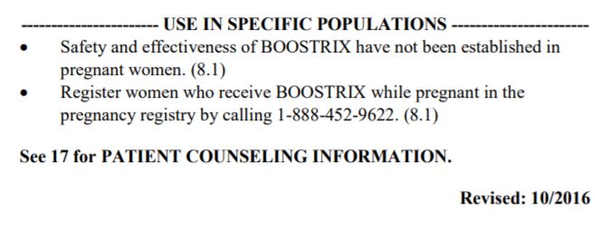 #2. Are you aware that the first page of both available Tdap inserts state that safety and effectiveness have not been established in pregnant women?