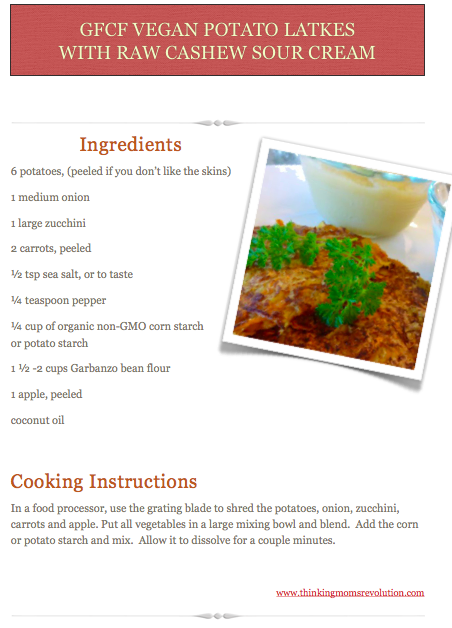 Try out this gluten-free and casein-free potato latkes with vegan sour cream made from cashews. A family favorite in my home during the holidays!