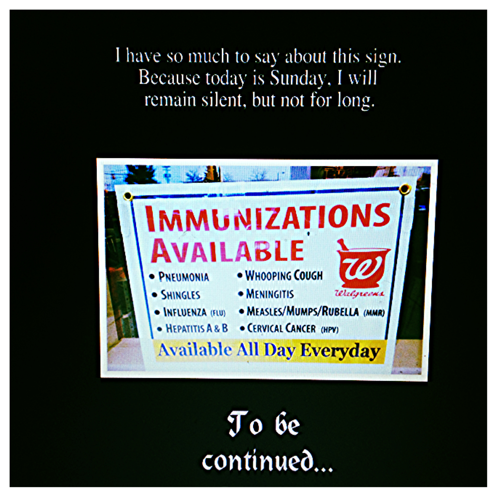 Drives me insane. They do not take current health status into consideration. What if someone said they want them all? What is the protocol for how many/which ones they would give? How prepared are they for an immediate adverse reaction? If a person has a reaction after they get home, Walgreens/WalMart/CVS will probably never know about it. They might as well put them in a gumball machine and call it a day.