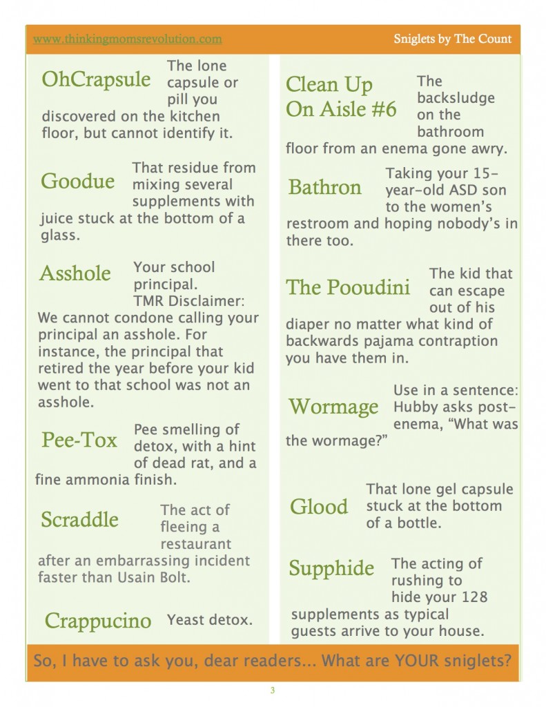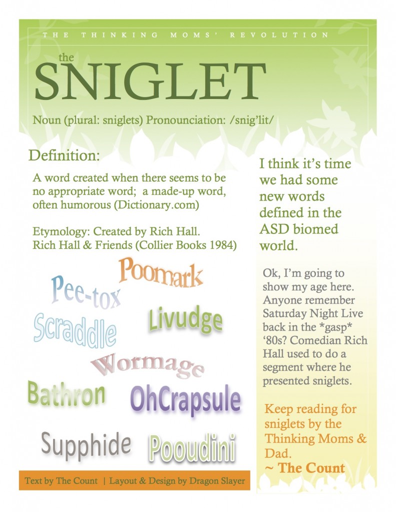 I think it’s time we had some new words defined in the ASD biomed world. Read on and enjoy. So, what are YOUR sniglets?