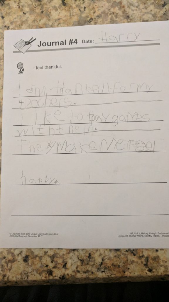 We have been home a little over a week. Reports from school indicate more focus and more words and word attempts. He attempts to repeat everything you ask. He is reading short books aloud (he could read before, but we only knew because of multiple-choice comprehension questions on the iPad). He wrote a few sentences this week.