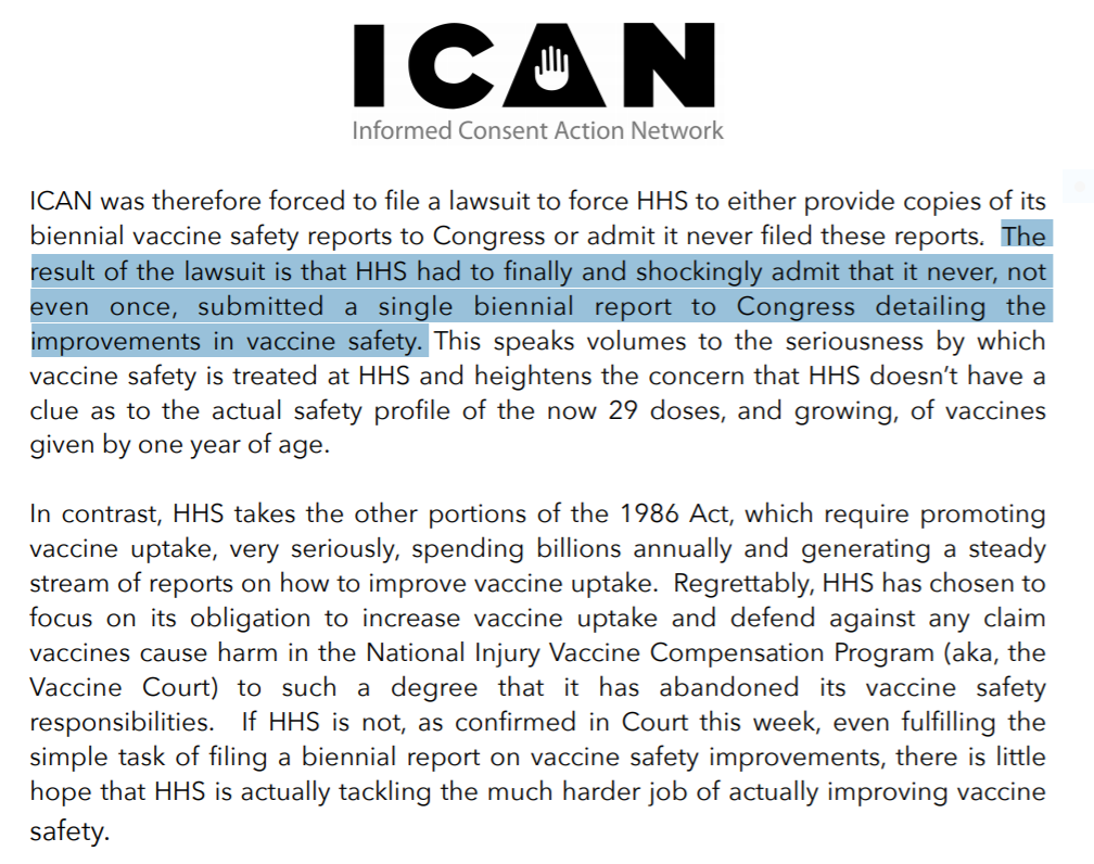 The 1986 NCVIA needs to be abolished - fully repealed. Anything short of full repeal will leave a totally corrupt framework in place. Also, 30-120 days is not long enough follow-up post vaccination. In fact this is similar to what was done for Gardasil. Follow-up has to be years, similar to what is done in cancer trials and cardiovascular trials. It’s not too much to ask; it’s simply what is necessary to understand the impact of vaccines on downstream health (all potential health outcomes). Frankly, it’s nuts that we inject infants with products for which there are no comprehensive studies. It’s an abominable error in judgment.