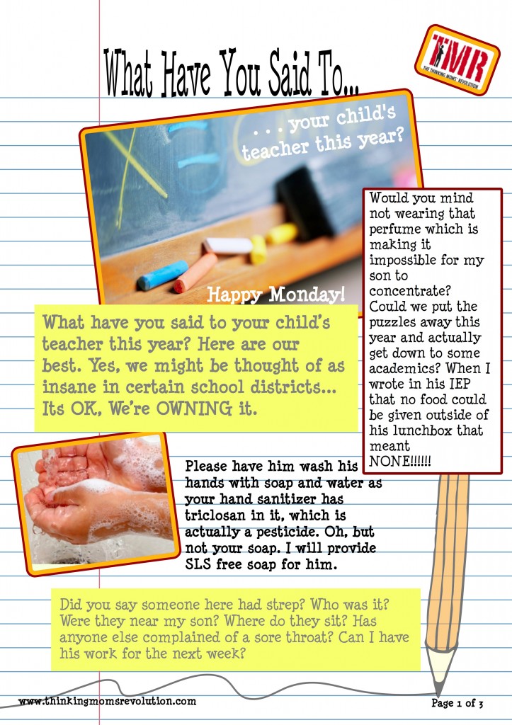 Now that our kids are back at school, the Thinking Moms shared some of the things we have said to our children’s teachers. Please read and share with us what YOU said. Can you top this?