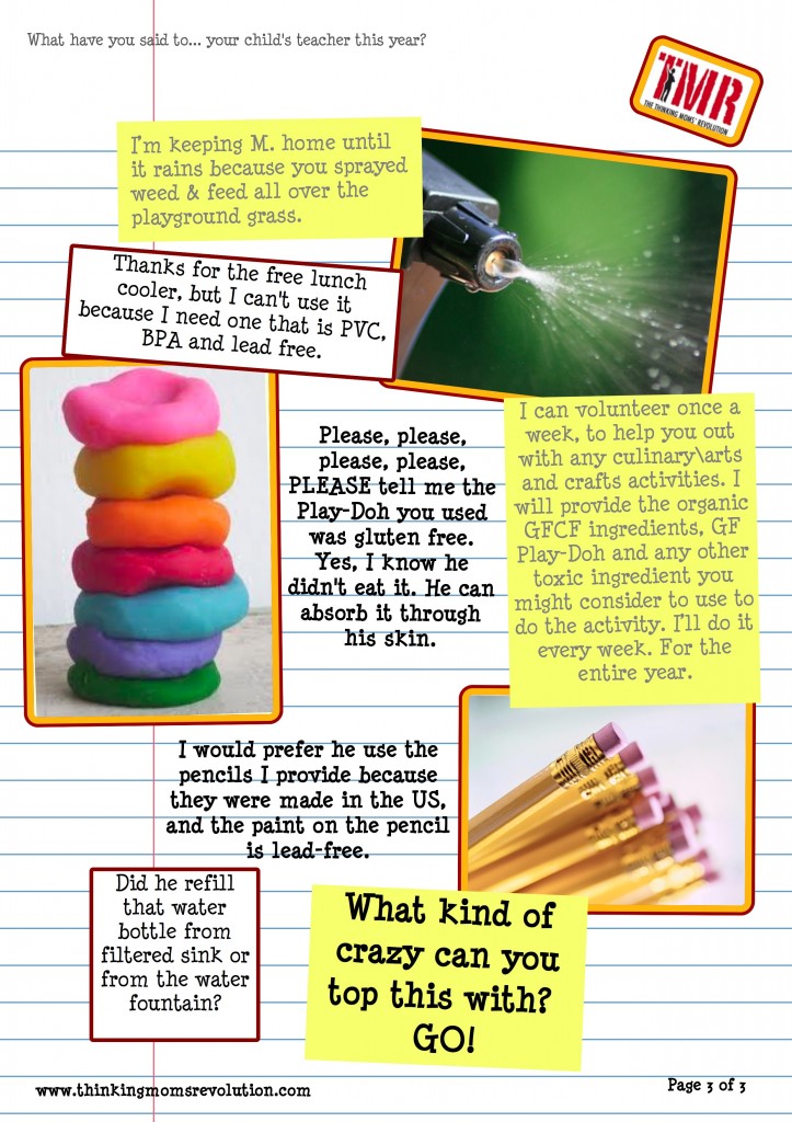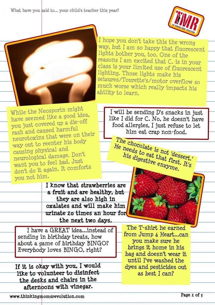 This is the note that goes to all three of my kids teachers (the NT kids as well as my former autistic but still chemical sensitive son).